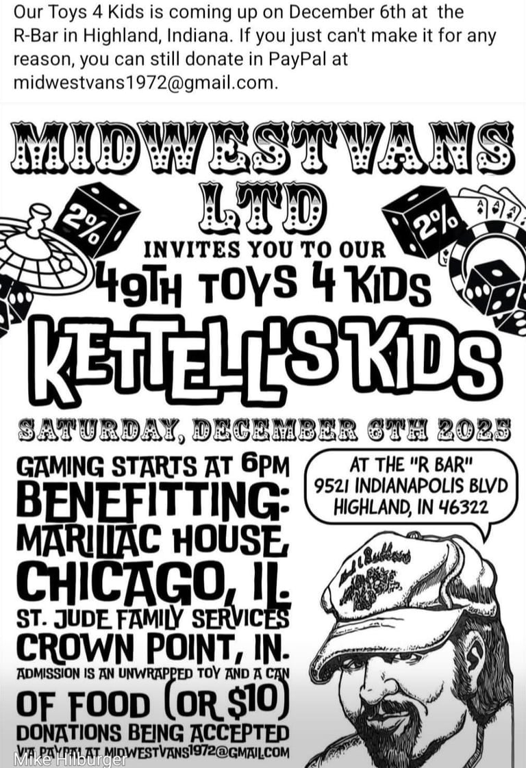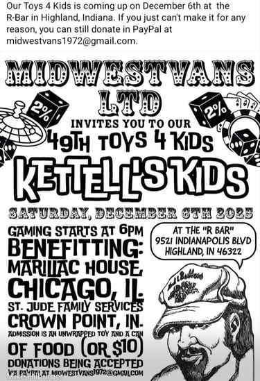 It's Holiday Season and Time to Remember Those Who Don't Have the Things They Need to Get Through. Our 49th Toys for Kids Vegas Night is Saturday, December 6th at the "R" Bar in Highland, IN.