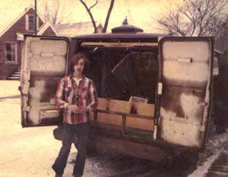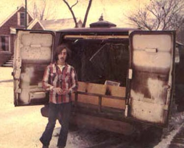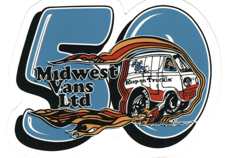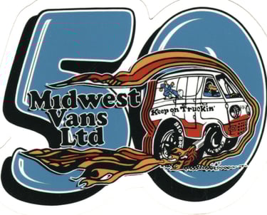 Midwest Vans Ltd was founded in spring 1972. The club started as many did then, blue collar workers and returning vets looking for a place to hang out and party with their friends. Vans were purchased as inexpensive transportation, and a way to go camping and cruising. Flyers were printed and windshields were plastered. On a Sunday in March, in a park at 159th and Torrence, across from River Oaks mall, the seeds were planted. From there, it has been a long and winding road. Later that year, there was an announcement in Hot Rod Magazine about a national gathering of van owners in Tiger Run, Colorado. 20 MVL members made the trip. Only Vans Ltd. from California had more vans there(21). At the event, Terry Cook had the idea to form the words "Keep on Truckin" with Vans. MVL formed the "on" and got their first national media exposure. MVL is spelled out in beer cans on the roof of George Kettell's Dodge in the photo.